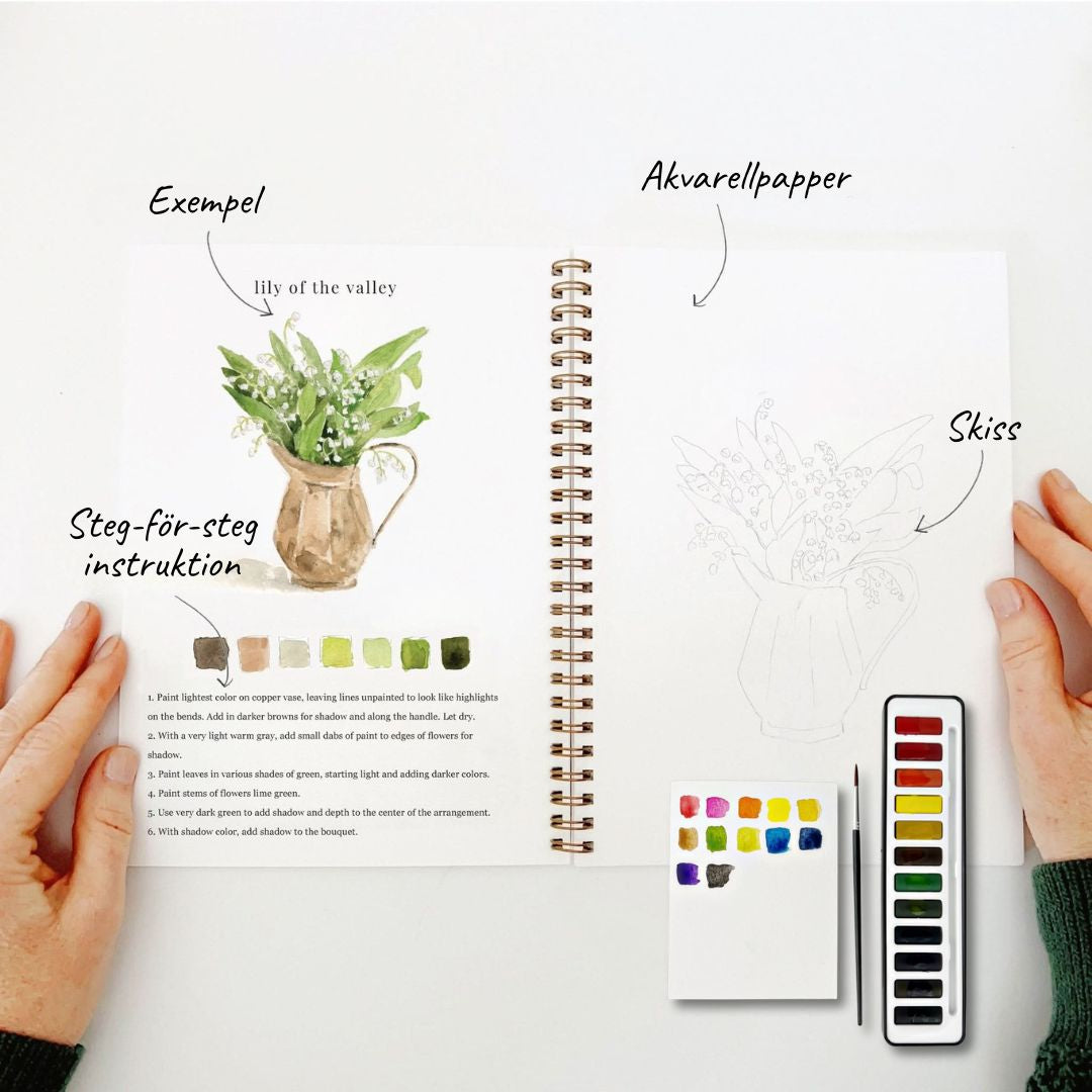 ✓ Professionell akvarellfärg & pensel ingår – du kan börja direkt.