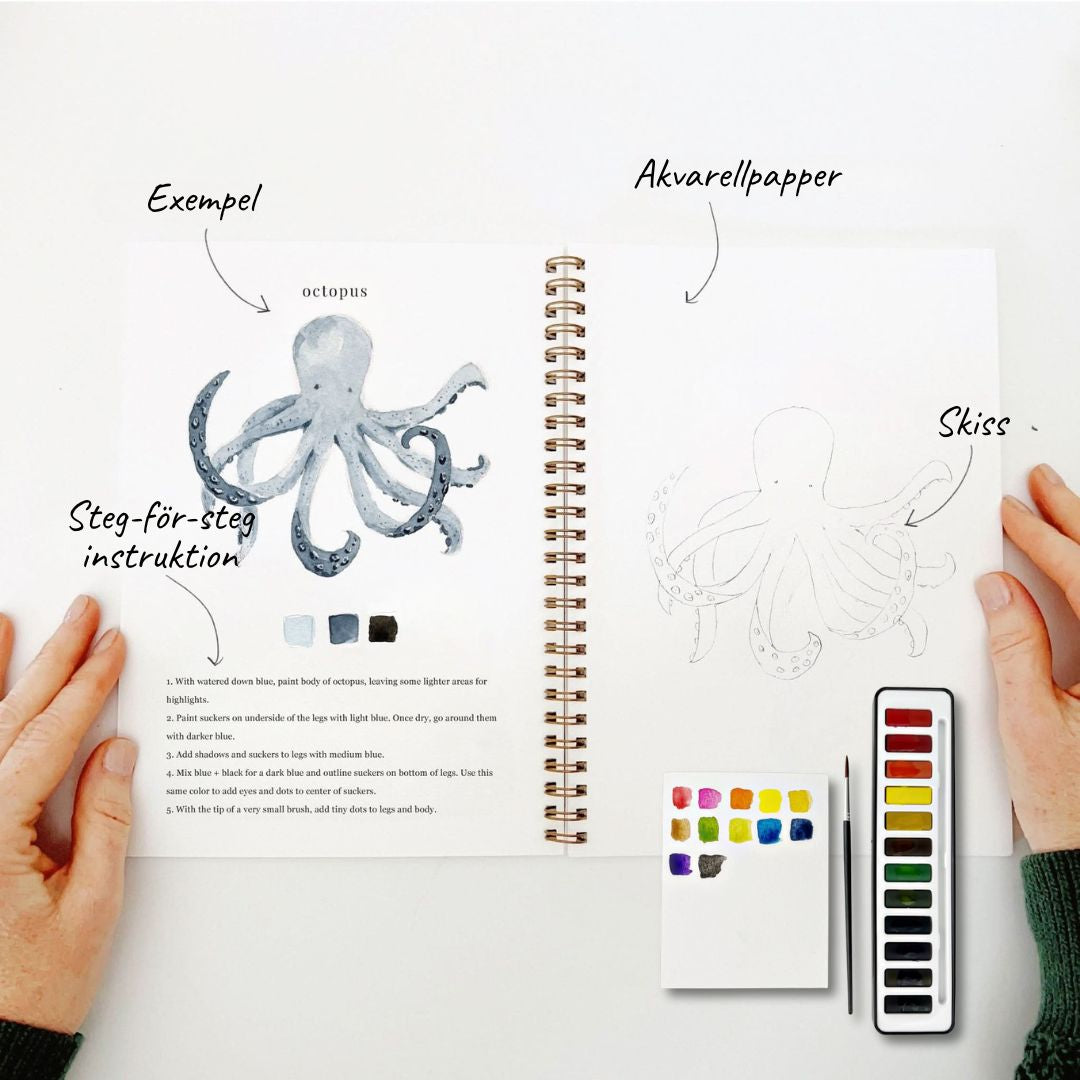 ✓ Professionell akvarellfärg & pensel ingår – du kan börja direkt.